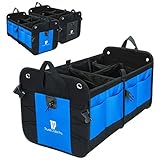 - INNOVATIVE DESIGN AND MULTI-FACETED DESIGN - The cargo storage container was designed and invented after months of testing and sampling with the best factories. It combines all the strengths and addresses the shortcomings of existing trunk organizers. It has the most pockets, 3 compartments, removable sub-dividers, can be folded half-length as a seat organizer, light weight yet unbreakable. It is fully-collapsible for easy storage, and is designed to prevent your cargo from sliding