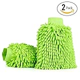 Best Deals Car Wash Mitts (2-pack), iTavah Premium Microfiber Chenille Super Absorbent Wash and Wax Glove (Green) in USA
