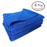 Zeltauto Quick Dry Microfiber Towels Cleaning Cloth, Anti-Scratch Car Detailing Care Towels Blue, Pack of 6