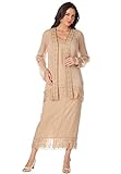 Float into that special occasion with this beaded three-piece plus size skirt set with carwash fringe detailing at the jacket and skirt hemlines. Look as beautiful as you feel with a flattering fit, modest coverage and runway-ready glamour. Beading accents the scoop neck of the sleeveless tank and collar and facing of the long sleeve jacket. Keep accessories simple to play up the femininity of the beading. Polyester georgette. Dry clean. Imported. Three-piece skirt set Scoop neck sleeveless tank frames the face and keeps you cool Long sleeve jacket Pull-on skirt with elastic waistband Fully lined tank and skirt All three available colors have gold and silver beaded detailing on hemlines of jacket and skirt Skirt about 34" (if you're 5'5", the hem will fall at your lower calf) Polyester georgette Dry clean Imported Plus size skirt sets, skirts, special occasion three-piece beaded carwash skirt set, sizes 14W to 34W Watch The Dress Fit Video